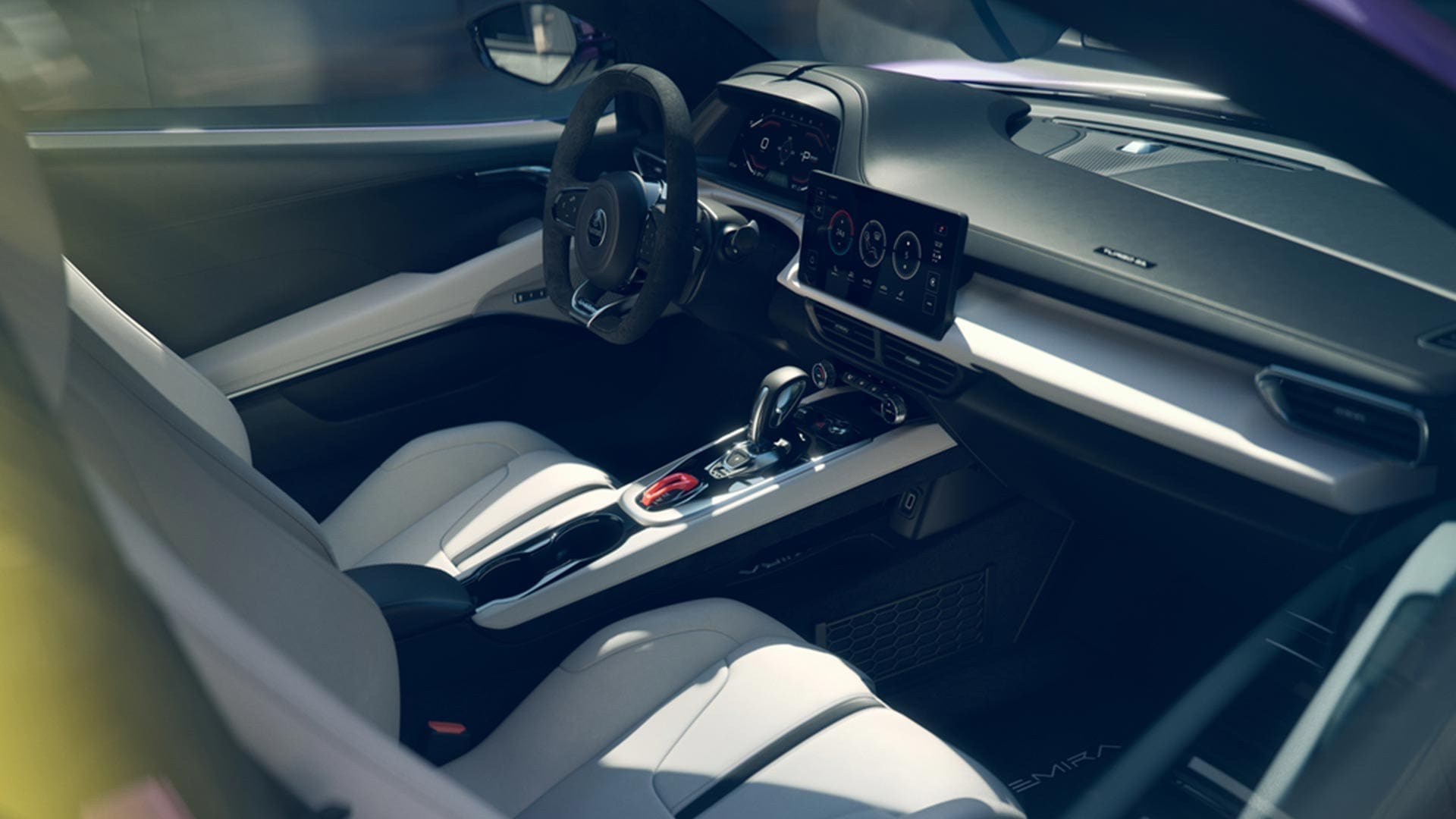 Well, isn’t this a little treasure? Lotus is the ultimate sports car formula: small, light, fast and fun. “Lightness” was the catch-cry of Colin Chapman, founder of Lotus; it helped him win many Formula One victories. The Emira typifies this fabulous form. With compact dimensions, rear-wheel drive, and a mid-mounted engine, it is masterfully packed.