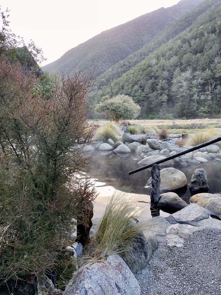 I wake up to brilliant sunshine and after another soak then I head to the next spot, Maruia Springs in The Lewis Pass.