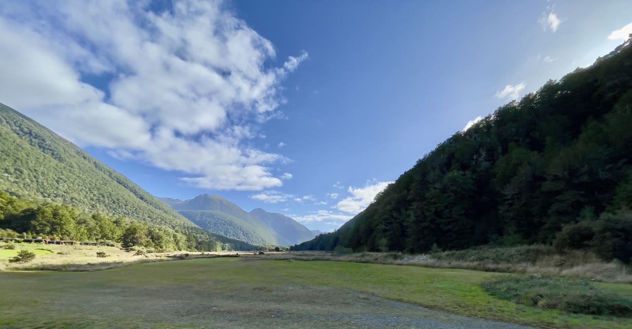 Then I head to Mount Lyford via the spectacular Inland Road. Views of the seaward Kaikouras on one side and the inland Kaikouras on the other, The road gains altitude over a couple of hours, till reaching a high plateau where the access road to the mountain starts. I drive up as far as I can, the lovely alpine forest thinning at the closed ski field road. What a view! I have full data reception at the top of the mountain – so I post. The air here is cool, crisp, and refreshing – perfect to stop for a drink and lunch.