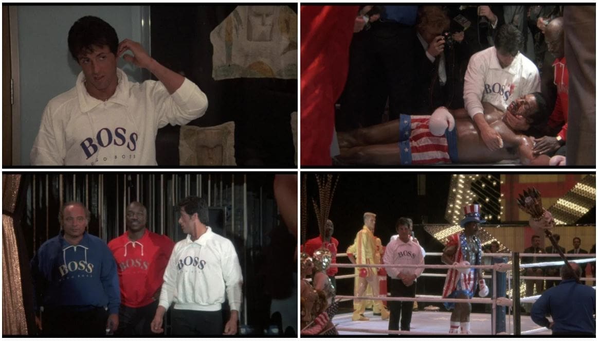 Way back in 1985, Rocky 4 brought Hugo Boss to the big screen. Not once, but thrice in one of the most iconic scenes of the series. Sylvester Stallone sported a white hoodie, emblazoned with the iconic fashion house’s logo. He’s backed up by Paulie and Tony Duke who wear red and blue versions of the same top. It’s American patriotism at its most stylish. No doubt the sharp look and strong imagery evoked by a gigantic “BOSS” written across the front was also a major factor in their inclusion in the film. This is what these men are all about, they’re at the top of their field, they’re the best. Let’s ignore the fact that Apollo gets stone cold murdered by the end of this scene.