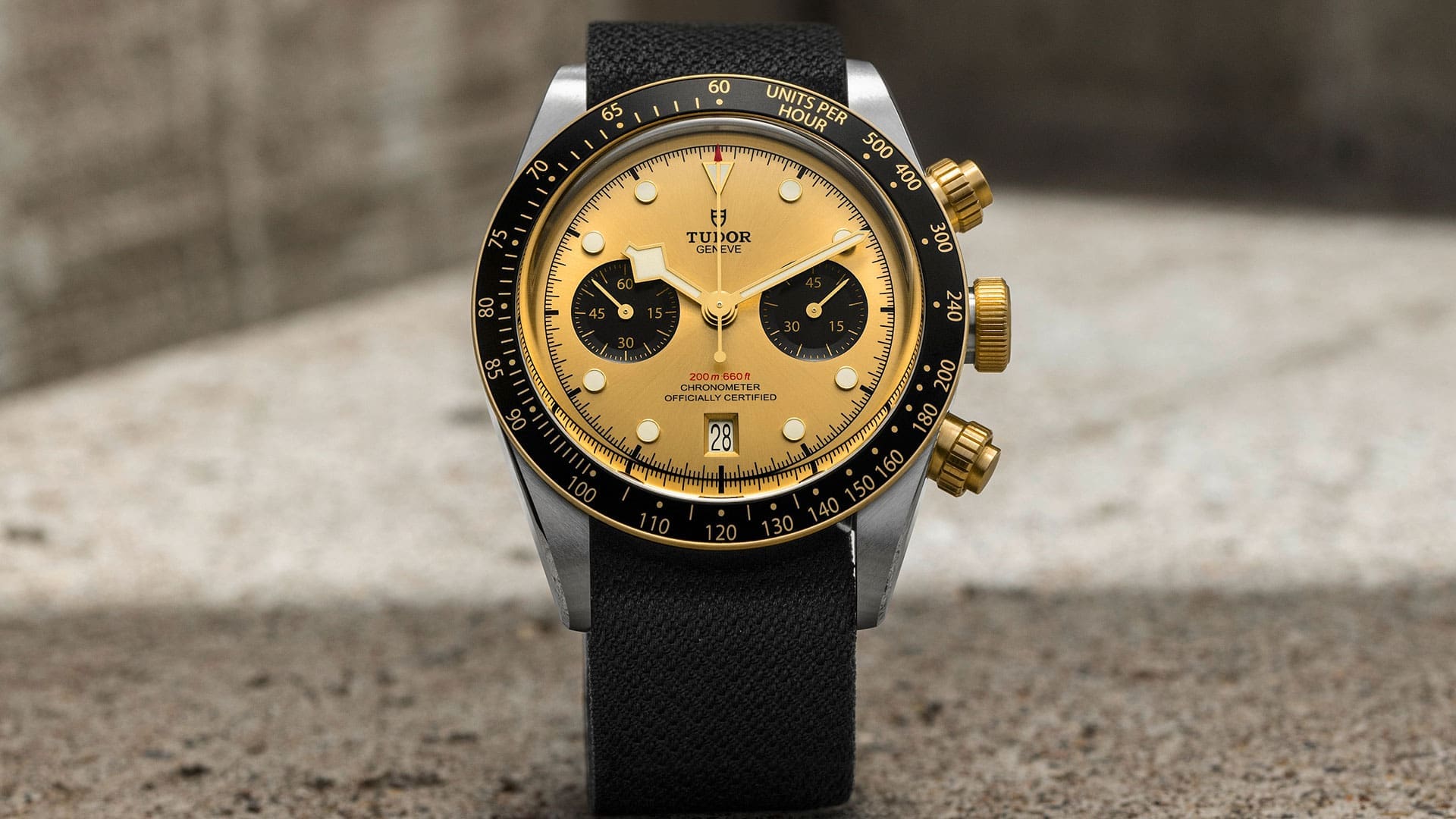 Much like its Black Bay Compatriot Chrono compatriot, it comes with three different bracelets to choose from; the Riveted steel and yellow gold bracelet, brown leather strap, or black fabric strap with beige band and buckle.