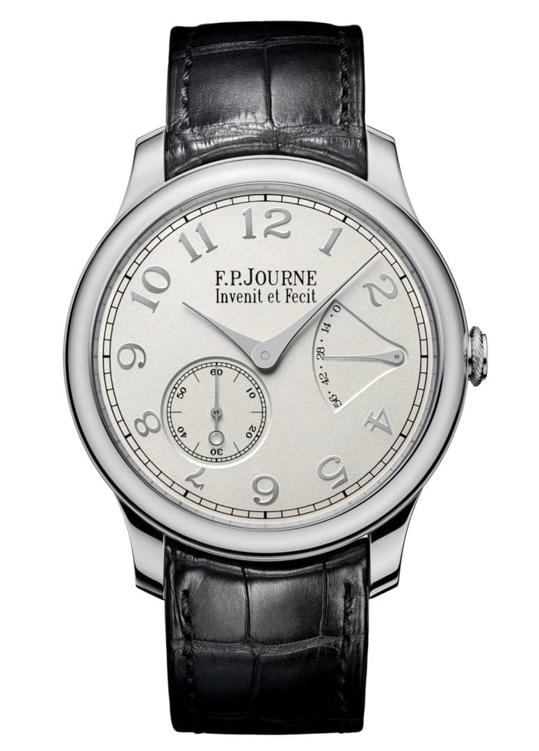 The Chronomètre Souverain, a masterpiece precision chronometer wristwatch from the renowned watchmaker F.P. Journe, stands as a timeless ode to the horological heritage of the 19th century. Embodying the purest chronometric tradition, this timepiece draws inspiration from marine chronometers of old, fusing traditional craftsmanship with unexpected elegance. Encased in platinum, its 40mm diameter exudes sophistication, while the whitened silver dial adorned with 18K white gold appliqué numerals adds a touch of opulence. The slender 8mm profile houses an extraordinary manually wound 18K rose gold movement, characterised by twin barrels that deliver linear force to the escape mechanism, granting over 56 hours of continuous precision. With its left-subdial showcasing small seconds at 7 o’clock and the 56-hour power reserve indicator on the right at 3 o’clock, the Chronomètre Souverain is not just a timepiece but a manifestation of horological poetry.