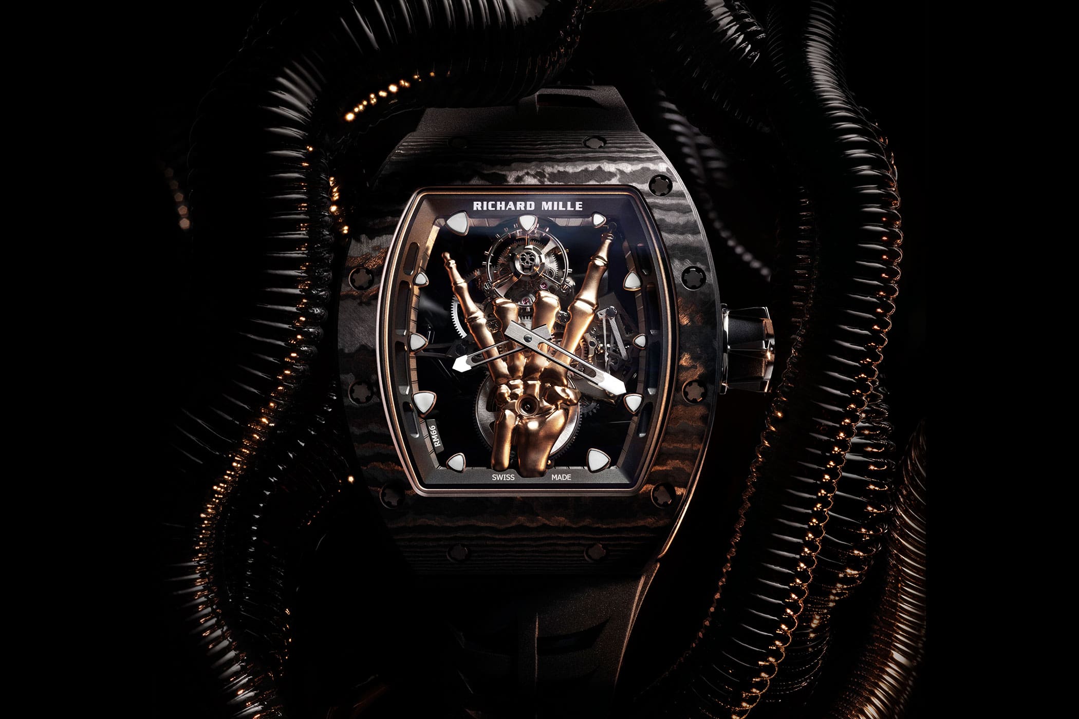 The Richard Mille RM 66 Flying Tourbillon is the rebellious rockstar of the watchmaking world, proudly displaying its fiercely irreverent attitude. This limited-edition timepiece, inspired by the electrifying world of rock music gives a bird to horological convention. With a flying tourbillon at 12 o’clock, the iconic ‘horns’ hand sign, masterfully crafted in 5N red gold, boldly emerges through an X-ray-like view. Richard Mille’s audacious craftsmanship is showcased in every detail, from the fast-winding barrel providing a 72-hour power reserve to the intricate grade 5 titanium movement, perfectly skeletonized. The fusion of Carbon TPT and precious gold in the case design adds another rebellious edge, reminiscent of punk rock belts. With only 50 pieces available, the RM 66 Flying Tourbillon Rock’n’Roll is a true celebration of irreverence and unparalleled artistry.