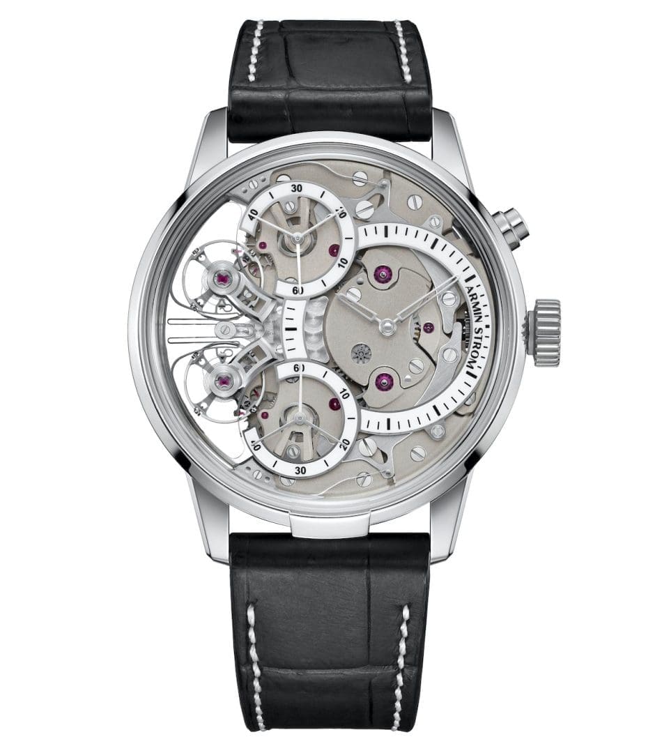 In the hallowed halls of haute horology, free pieces stand out quite as much as the “Zeitgeist” by Armin Strom – a remarkable timepiece celebrating the fifth anniversary of their resonance technology. With minimalist dial components and subtle decoration, the watch showcases the patented Resonance Clutch Spring, highlighting its ability to ensure consistent timekeeping. Crafted from a single piece of steel, this innovative spring quickly brings the balance wheels into resonance, enhancing shock resistance and precision. The Zeitgeist’s 43mm platinum case features sapphire crystal, anti-reflective treatment, and offers water resistance up to 50 metres. The hand-wound Calibre ARF21 ZG powers the watch, boasting a twin-second fly-back and 3.5 Hz frequency. This limited-edition watch is a very cool representation of the innovation still taking place in the world of watchmaking.