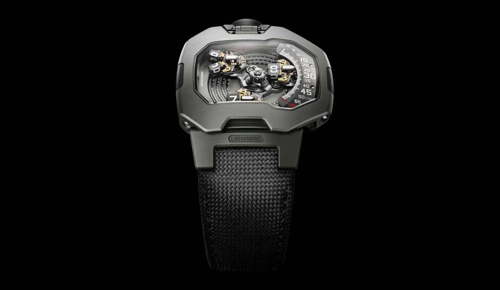 The UR-120, affectionately known as “Spock,” is a horological masterpiece from URWERK that’s boldly going where no watch has gone before. Inspired by the iconic Vulcan salute from Star Trek, this cosmic wonder features a cool satellite display that splits open like a revelation, revealing rectangular studs that elegantly spin to display the hour unit. Crafted by the ingenious minds of Felix Baumgartner and Martin Frei, the UR-120 is a new chapter in the evolution of the UR-110 collection, pushing the limits of technical advancement. Its celestial design boasts thought-out ergonomics with a smooth case that’s devoid of screws and notches. Inside this cosmic timepiece lies the powerhouse Caliber UR-20.01, a self-winding engine that navigates the time-space continuum with precision, guaranteeing a 48-hour power reserve. Aesthetically, the first series shines with a monochromatic allure, accented by golden shards that add a touch of celestial flair. Beam us up, URWERK.