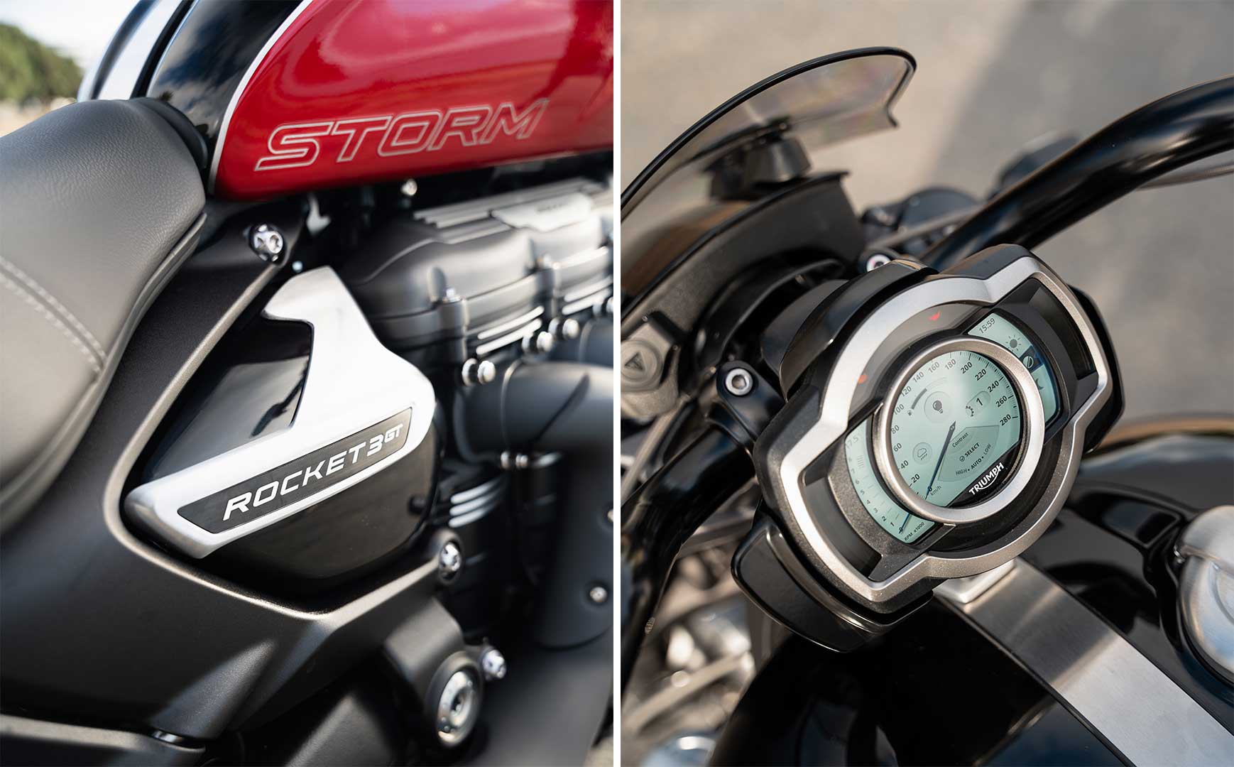 If Auckland is ever in a drought, the guaranteed way to break it is to give me a motorcycle for a review ride. Time and time again, as I pick up the new bike, it starts to spit rain. Before you know it, I’m riding a very expensive, very valuable motorcycle in wet conditions. During a week, I had two dry days on the bike, which I loved. Thankfully the Rocket was also confidence-inspiring in the wet.