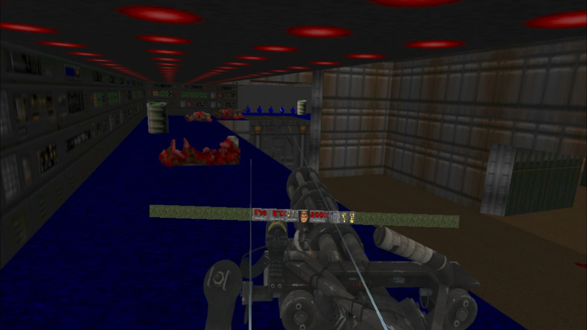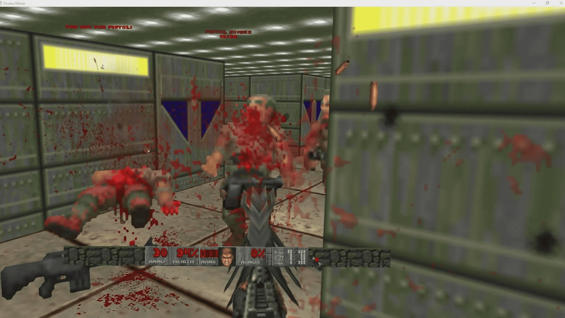 I played it seated the entire time and was able to clock the entire game in under a week. A session each night usually meant finishing an entire episode easily. By default, the classic menu bar hangs at the bottom of your vision, acting as your HUD. You can tweak the size of it in settings but I left it at default, despite the text being far too tiny to read in the top left that alerts you when you pick up key cards, etc. The base GZDoom mod I used has garbage 3D weapons. Just using the sprites from the original game criss crossed over itself.