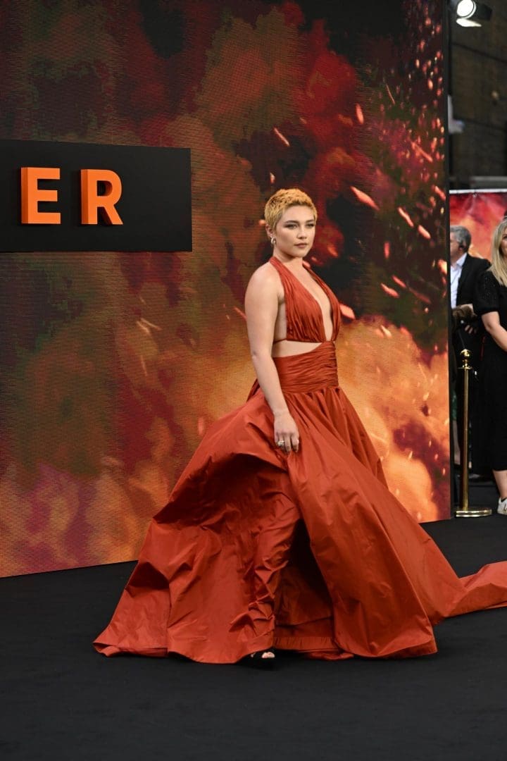 Florence Pugh attends the UK Premiere of “Oppenheimer” at Odeon Luxe Leicester Square on July 13, 2023 in London, England.