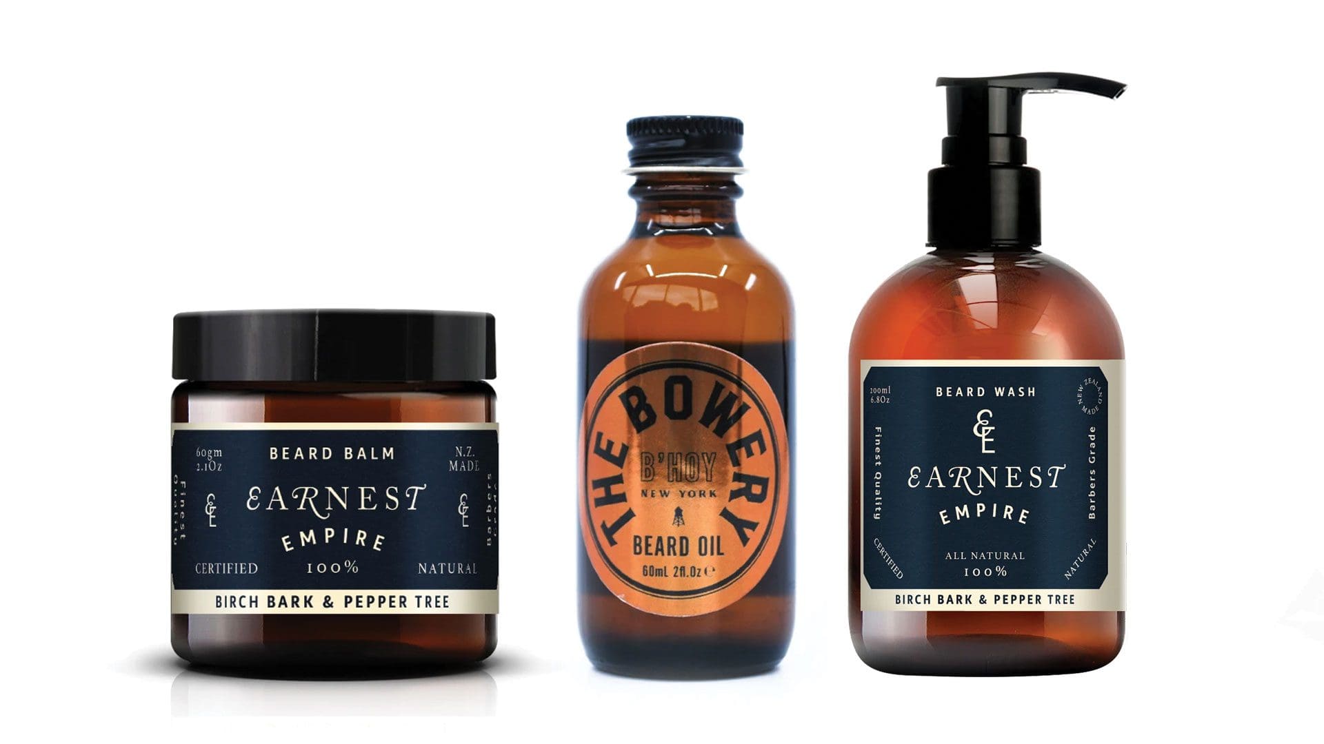 Product Beard Essentials: Ernest Empire beard wash, Bowery – B’Hoy Beard Oil, & Ernest Empire Beard Balm
