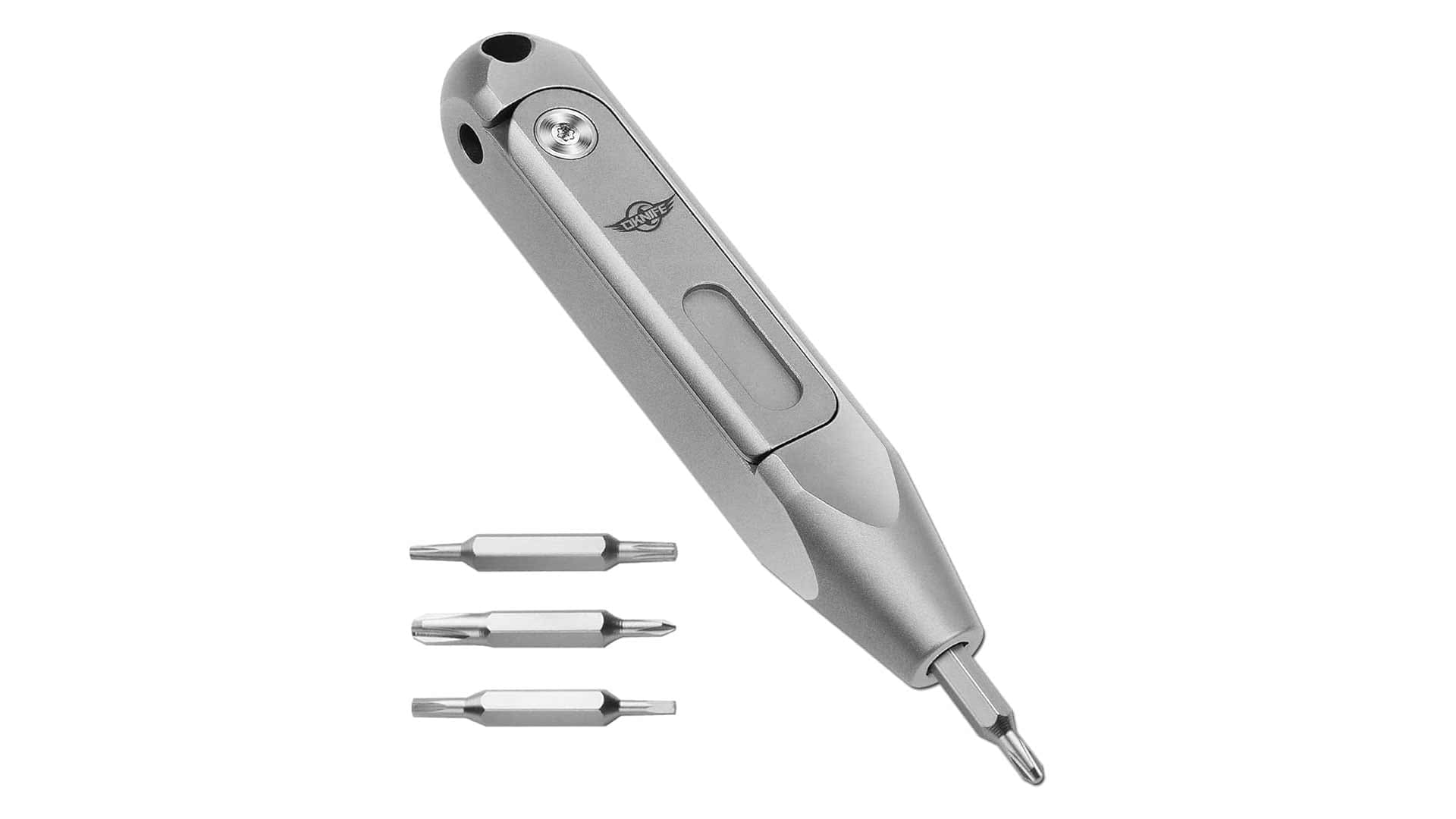 Made of lightweight TC4 titanium this pocket multi-bit driver is the perfect keychain ornament that is actually useful. Weighing just 42.5g it has a hidden compartment with 4 double-ended 4mm steel hex micro bits. If you’re not a fan of the sandblasted gunmetal colouring it also comes in cracked brass and blue.