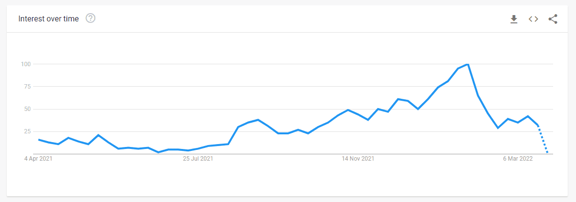 These numbers also track with interest as a whole. Google search queries match the graph above almost beat for beat. Crypto has always lived and died by its exposure, hence why those who have bought in have a vested evangelical interest in converting you to the way of the crypto. Without a Beeple sale in sight to generate more headlines, NFTs are in for a rough time. With that said, NFTs are attached to everything these days, even the crisis in Ukraine is cause for minting.