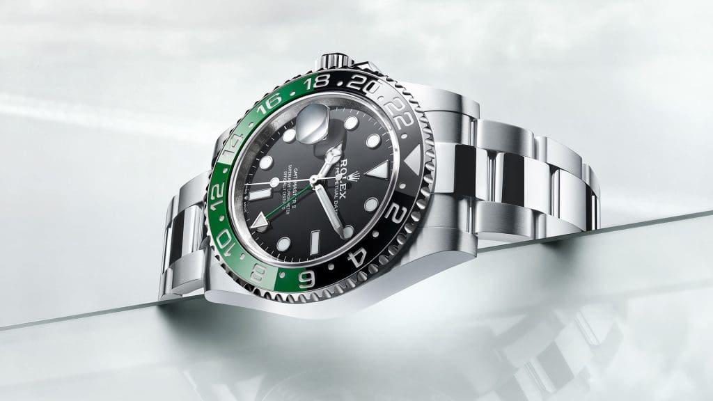 Rolex has released a new twist on the classic Oyster Perpetual GMT-Master II. This time around the crown and its guard have been flipped to the left side of the watch and both the date aperture and cyclops lens have been moved to appear beside the 9 o’clock.