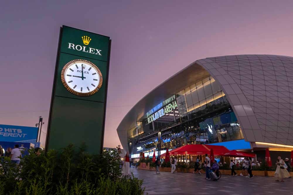 On the surface that sounds like standard sponsor talk, but it genuinely shapes the way the event feels. Every tie-break countdown, every shot clock, every long pause while a player bounces the ball 20-plus times on second serve is framed by that Rolex clock on the scoreboard. When the roofs close and a match rolls deep past midnight, the stadium’s wide shot tends to include a quiet glimpse of the crown.