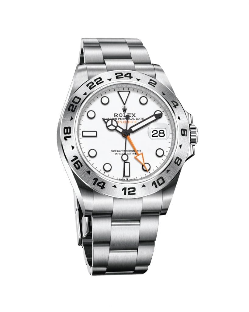 When you think about the world’s greatest and most famed explorers, they all have one thing in common; they weren’t afraid of taking a few risks to accomplish something extraordinary. Rolex creates its watches with that same mindset, and with the Rolex Oyster Perpetual Explorer II, they have demonstrated how carrying that fearless mindset can lead to outstanding results. This timepiece is undoubtedly daring; the skeleton indexes and hands are immediately noteworthy, jumping right off the snow white lacquer dial. Mixed in is a playful splash of orange with the roaming 24-hour hand (which pairs with the engraved bezel for easy-to-read 24-hour time) and subtle EXPLORER II inscription hidden in the background.
