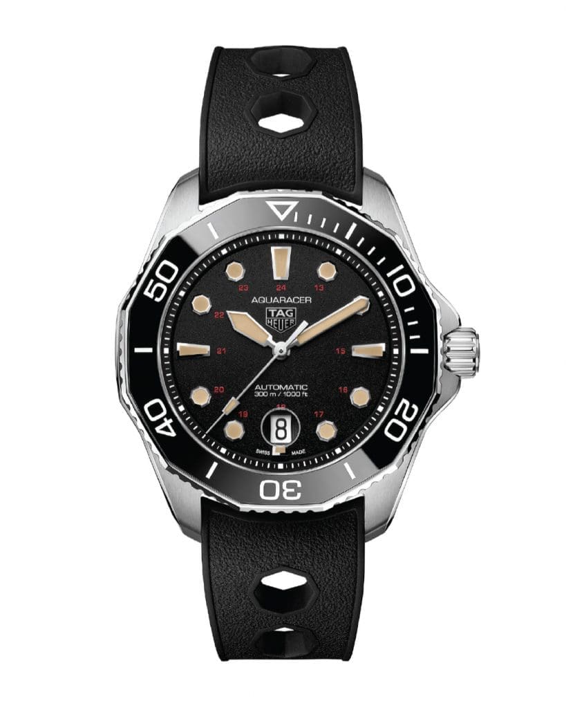 Sporting a very literal title which states its intentions right off the bat, the Aquaracer Professional 300 Tribute to Ref. 844 sets its sights on modernising one of TAG Heuer’s most iconic works, their 1978 Ref. 844. It goes without saying that with a name like Aquaracer, this is a premium diver’s watch that is tailored give you a high-level of functionality in the water. This is exemplified in features like the watch’s practical while stylish rubber strap with octagonal perforations, which is smartly designed to allow for water to pass between watch and hand to prevent drag. The 43mm case is put together with a lightweight, pressure-proof grade 5 titanium and the case back is engraved with an awesome ‘Diving helmet’ motif.
