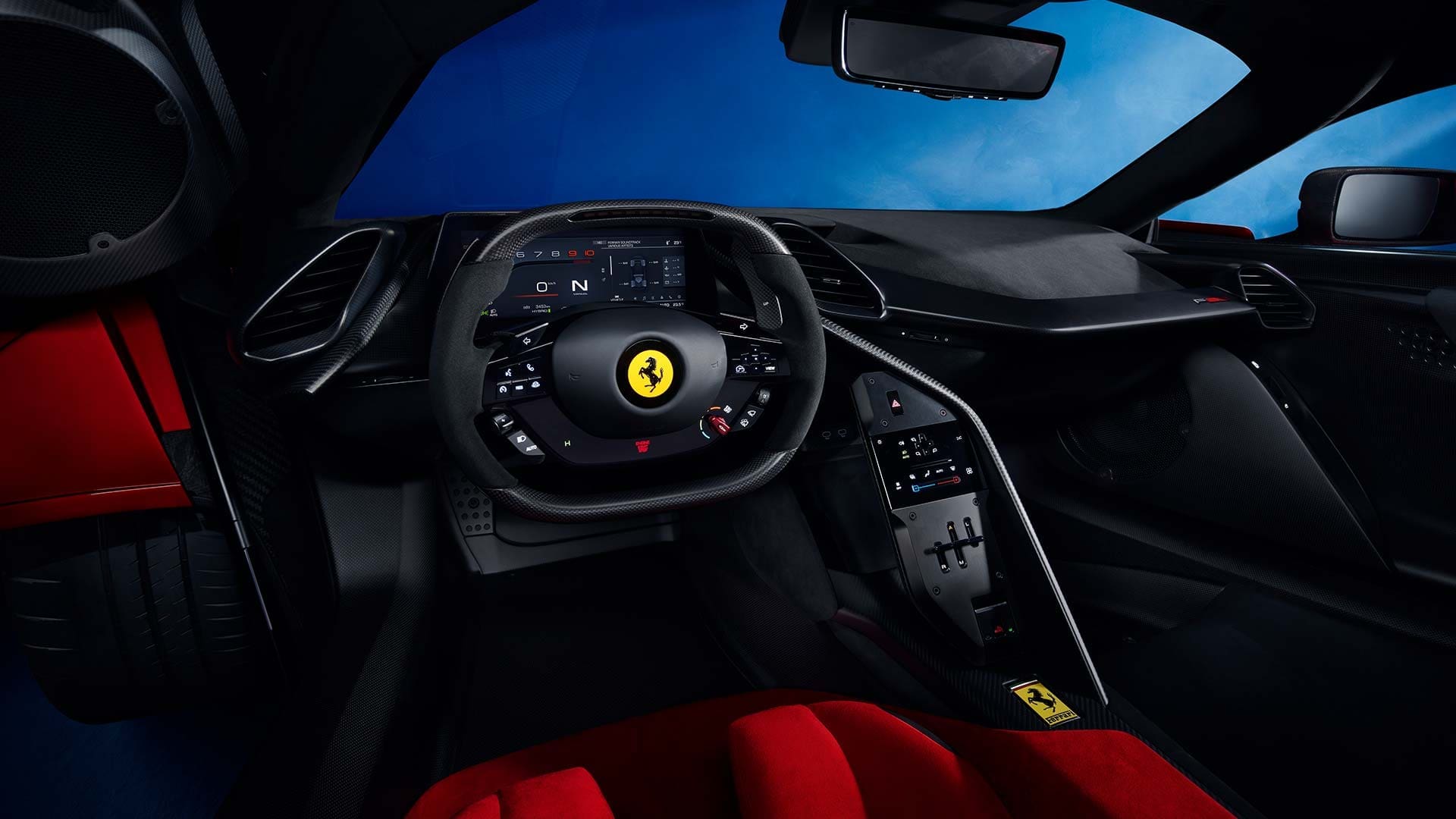 The F80 is equipped with the first Ferrari road car engine to benefit from a new approach for statistical knock control, which lets the engine operate even closer to the knock limit, allowing the use of higher combustion chamber pressures than ever (+20% compared with the 296 GTB) to unleash even more of the engine’s potential.