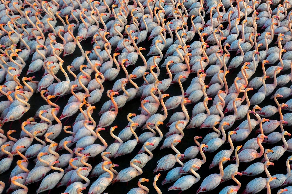 There’s safety and warmth in numbers, and Mehdi Mohebipour found beauty in the lightly repeating patterns of these flamingos.