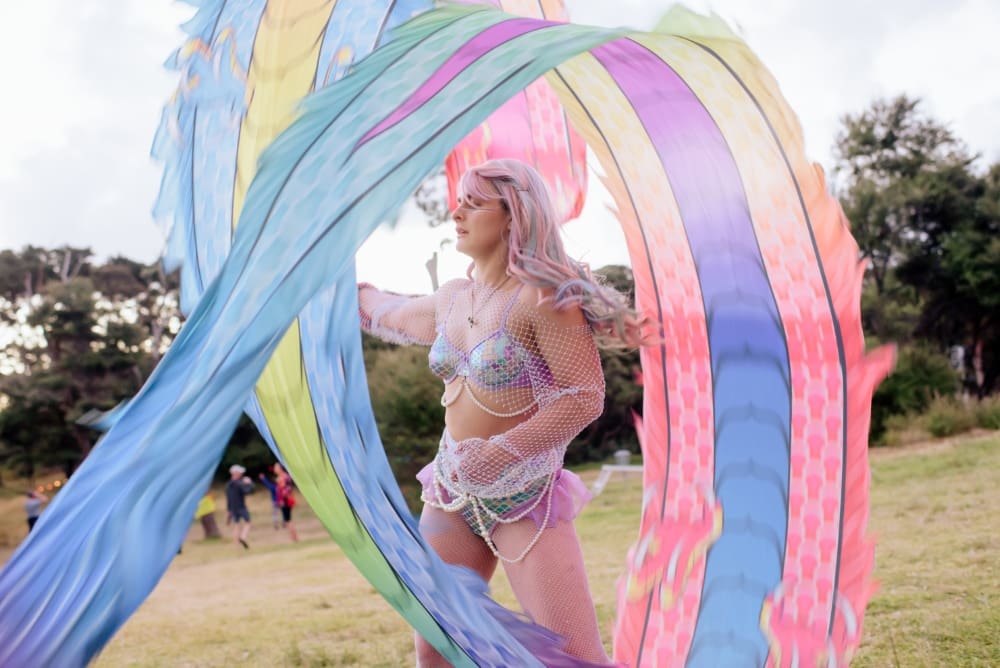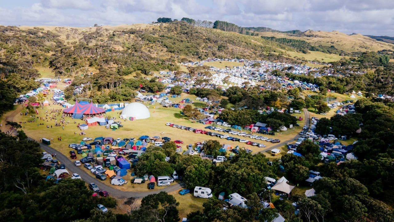 To get to the festival, we again drove up Muriwai Beach and through the four-wheel-drive road covered in an earlier post. The **Prado Adventure’s Kinetic Dynamic Suspension System (KDSS) provided excellent handling and stability on the rough terrain, making the journey effortless. Amazingly, you pop out of the exit road just a kilometre from the festival entrance! I volunteered as a photographer for the festival, so we were allowed to go in a day early, which made it easy to find a campsite. We selected a flat spot a tiny bit of shade, and lots of room around it for my friends. They trickled in over the next day, and eventually, we had our little sub-camp of about 20 people, lots of whom were volunteering at the festival.