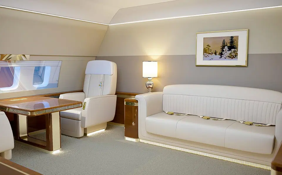 I’m going to start off with the Putin’s private jet, otherwise dubbed the Flying Kremlin. Putin has three $716M identical private jets, which are all Ilyushin Il-96-300PU’s, a four-jet, long-range airliner. It can hit speeds of 900km/h and all are prepared to fly at the same time, nobody knows which one the big guy is going to fly in until right before take off.