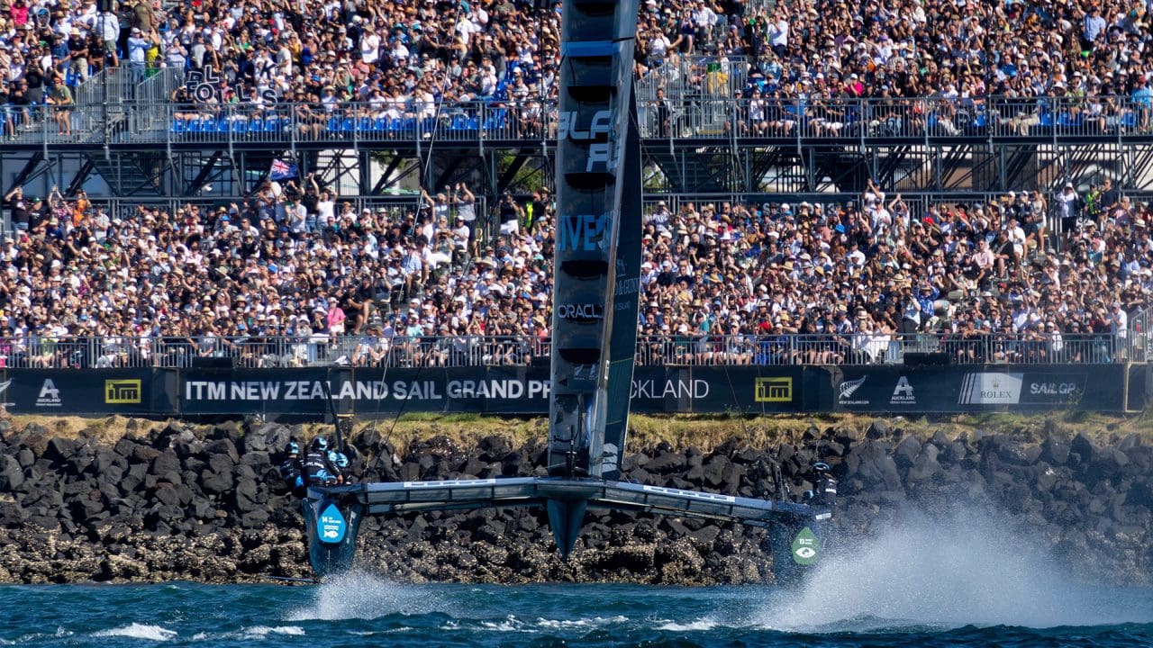 The Auckland course is in the city center just off Wynyard wharf, with easy access to public transportation and motorways. The harbour is a natural stadium with hundreds of viewing points. The site is more than just a grandstand though. There were at least three bars, 20 food truck vendors, entertainment as you walked to your spot and a positive party atmosphere that was reminiscent of the 2011 Rugby World Cup. Add to that an entertainment lounge and corporate suites, they have checked every box! The SailGP organisation rave about the local setup.