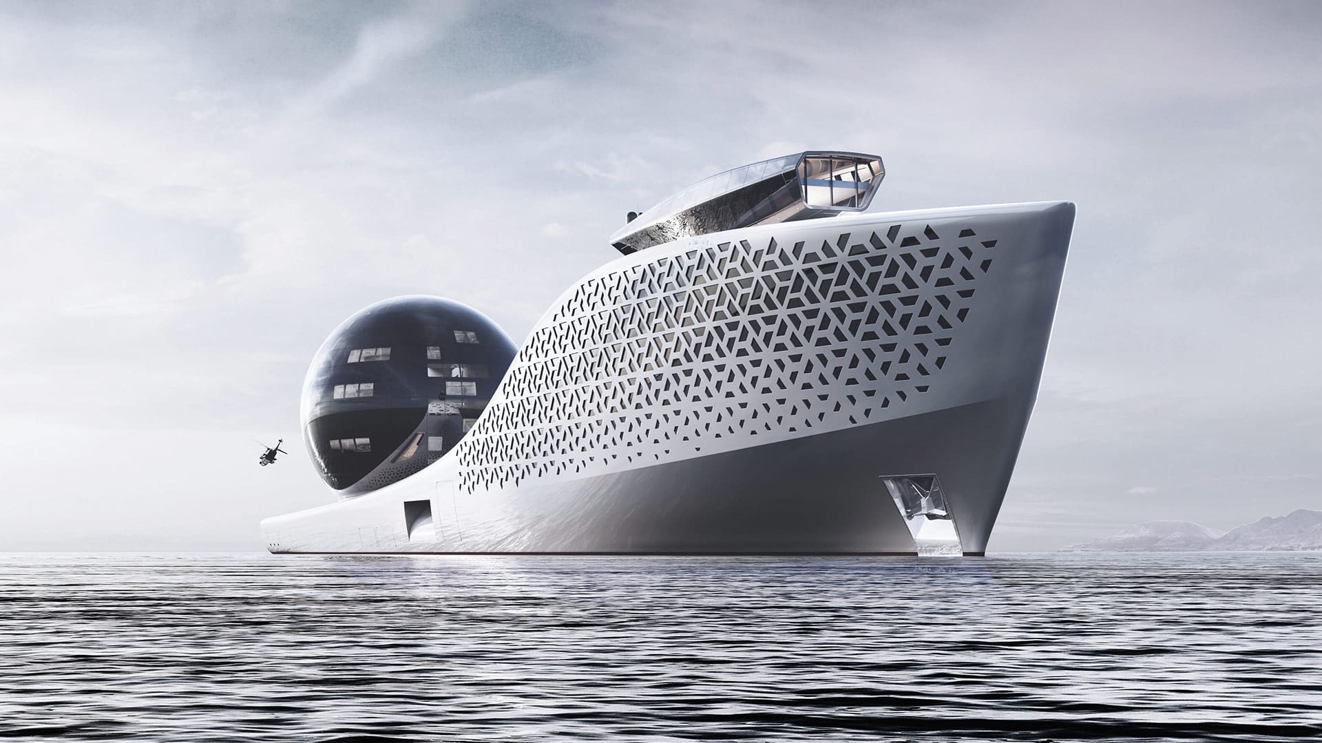 The Earth 300 sets to sit at 300m-long with green technology merged within the planks. The superyacht will incorporate the best technology to analyse and examine ‘extreme’ technology, whilst using robotics, AI and intelligence systems in one-of-22 onboard laboratories. With an interior dedicated to scientific research and expedition, a city of science will be housed in a massive sphere. There’ll be over 160 scientists on board too, with 165 crew. The boat will also have an observation deck, 20 VIP luxury suites, living room areas and a huge dining area. To drive the vessel, Molten Salt Reactors are used to push the beast through the choppy waves in a clean and sustainable way. Hopefully, in the name of planet Earth, the Earth 300 will launch in 2025.