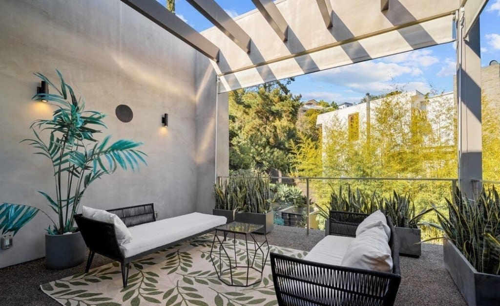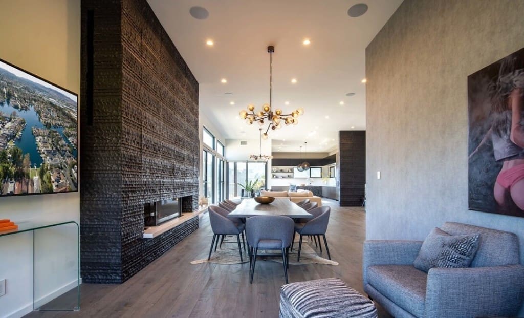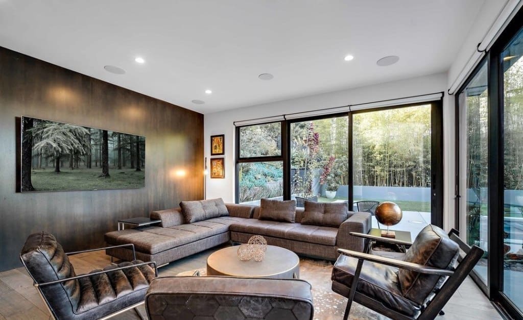 Originally built in 1974 and then entirely renovated in 2016, the home has an open floorplan taking advantage of natural light, and the listing describes its look as “sexy architectural”.