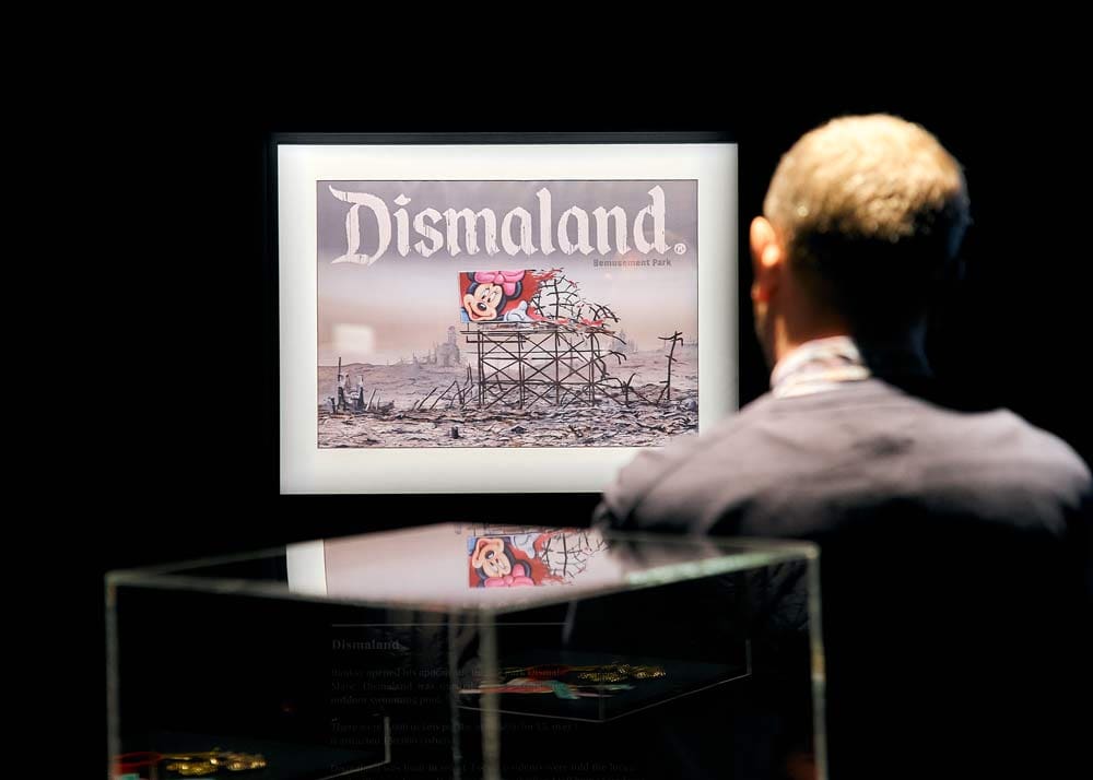 I don’t come from the fine art world. I’m actually a theatre-producer and I own an entertainment company. When I got involved with Banksy nine years ago, as a producer, I realized that there’s a reason he has such a broad appeal. I like to tell stories and take an audience on a journey. You know the people who say they don’t ‘get’ art, and don’t go to galleries…I bet they do like Banksy, and will go to a gallery for him. They’ll pick up the newspaper when Banksy is on the front cover with a new work and they will talk about it. I like when we work with schools and school children, because Banksy is a point of entry into the arts. The images are instantly recognizable! People don’t have to stand there for 10 minutes and over analyze the pieces and think they’re very wise and clever because they gave an in depth reading on an Banksy piece. For me, it’s more so a question of: do you like it? Does it speak to you? Banksy doesn’t explain what the image is, because it’s always so clear. The pieces usually have a lot of humour.