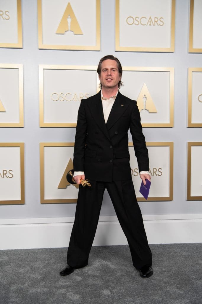 Sound of Metal editor and Best Editing winner made a statement in wide leg pants.