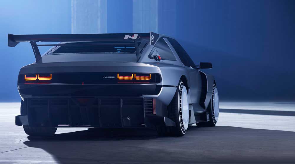 As well as mainlining Blade Runner, N Vision 74 is explicitly inspired by Hyundai’s Pony Coupe concept from 1974, developed by legendary designer Giorgetto Giugiaro. Hyundai says that concept was built into prototypes for what would have been Hyundai’s first production sports car, but it never made production, leaving behind exactly the sort of unresolved “lost future” that cyberpunk loves to resurrect. N Vision 74 inherits the Pony Coupe’s clean surfacing, its dramatic proportions, and its distinctive B-pillar, then drags that 1970s wedge into the electrification era with an unapologetically digital signature: Parametric Pixel lighting. Very futuristic in a kind of 80s sort of way.