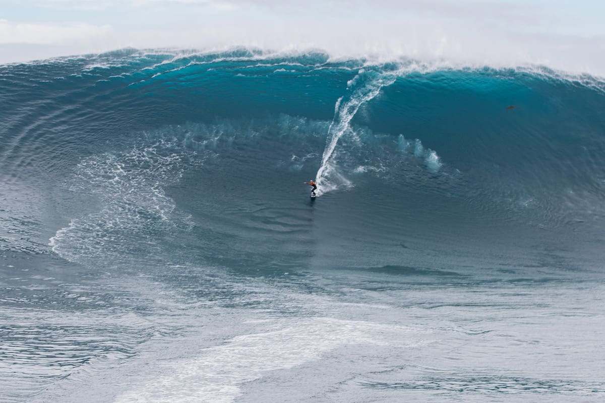 Riding this particular wave is Izzi Gomez at Cortes Bank, California, United States on January 11, 2023.’