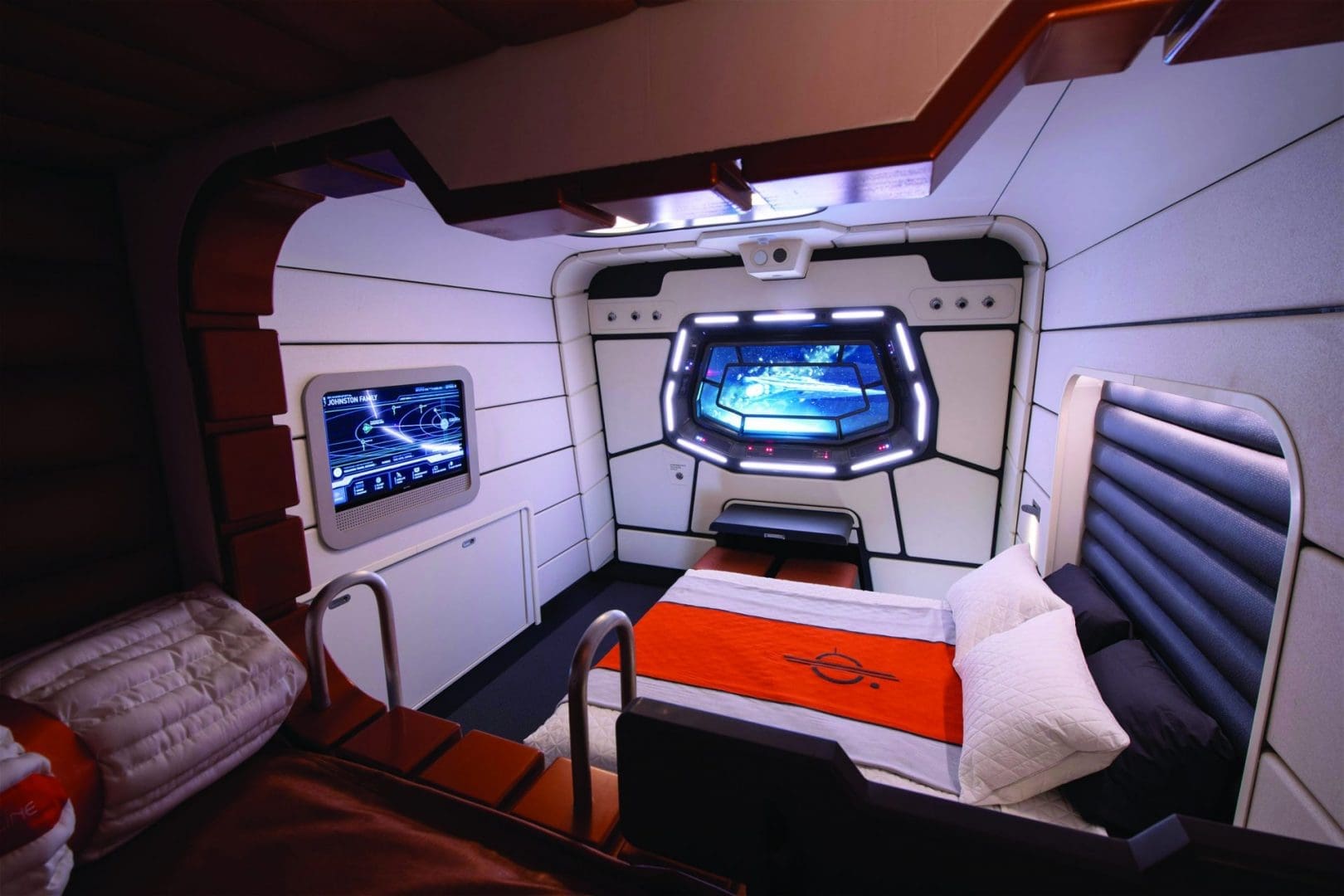 The guests will stay in cabin-like rooms, be treated to the finest in extragalactic cuisine and be able to interact with the different Star Wars-inspired characters making their way through the hotel. Even the windows (as they block out all natural light), will be offering ongoing views of space as the Halcyon flies from place to place.