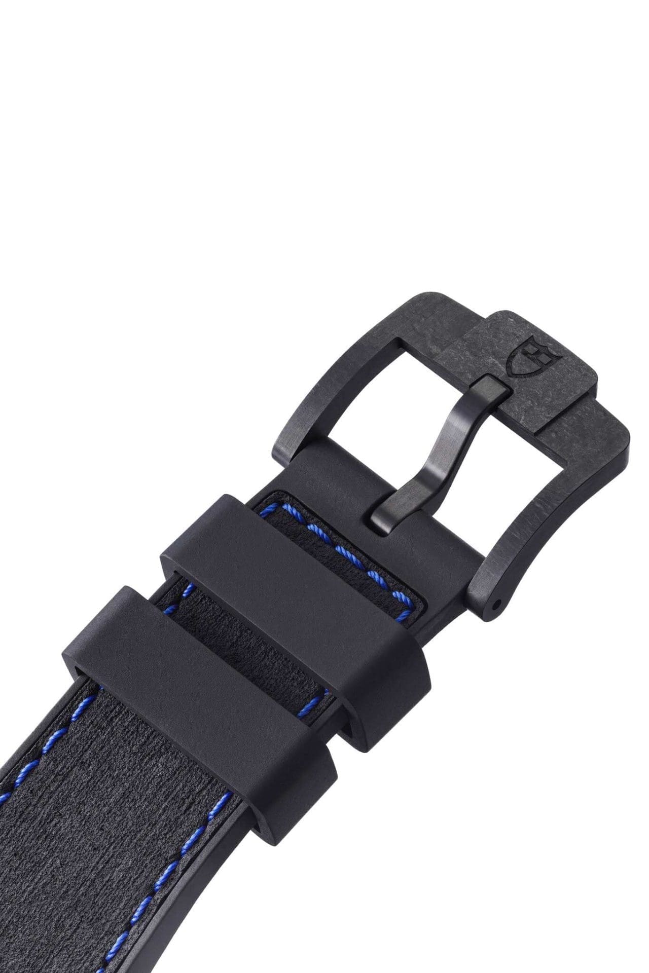 With a look directly inspired by the Visa Cash App Racing Bulls Formula One Team, the Black Bay Carbon 25 sports a racy blue accented colour scheme and design flairs that celebrates the teams 2025 season livery. At the same time it remains faithful to the Black Bay aesthetic with the famous Snowflake hands and domed “racing white” dial with two hollowed black sub-counters.