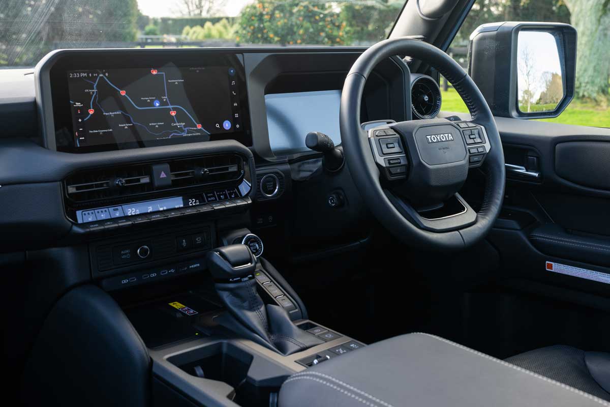 Inside the Prado’s new interior welcomes you with a marriage of toughness and tech. Toyota’s gone big with a 12.3-inch audio screen and heated/ventilated front seats, which are standard across all grades. The VX Limited turns it up to 11 with a panoramic roof and a 14-speaker JBL system. Need to navigate the unpredictable roads of Central Otago or the apocalyptic carparks of Auckland? The Prado’s multi-terrain monitor system on the VX and above has you covered, while the Adventure model’s tilt/slide moonroof will make it easy to keep an eye on that breathtaking view.